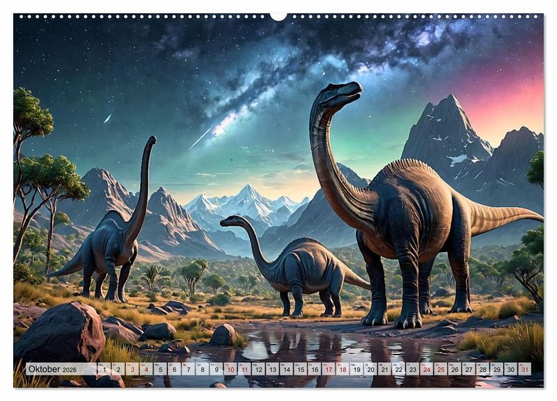 Oktober: Dinosaurier unter urzeitlichem Sternenhimmel