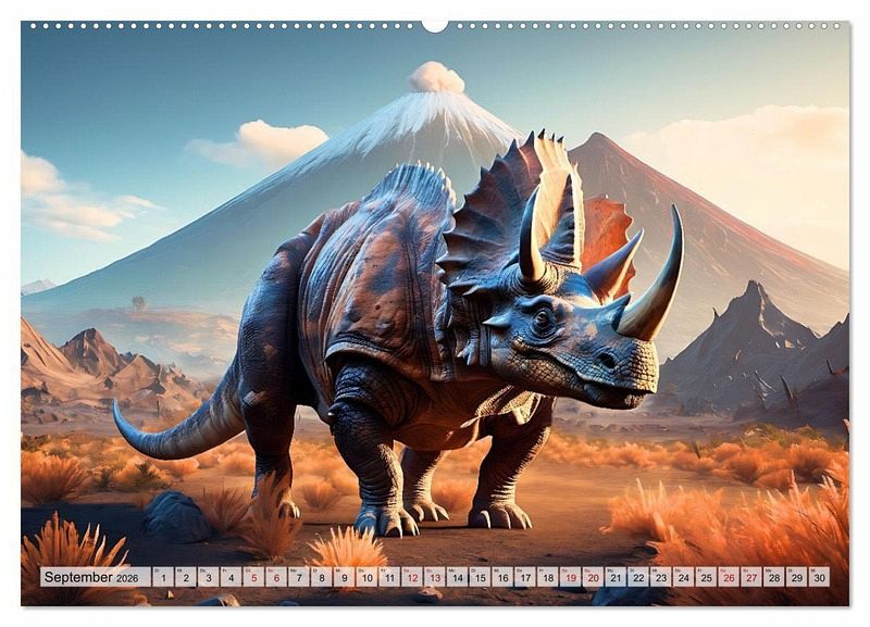 September: Der wehrhafte Triceratops, ein Hornsaurier der Kreidezeit