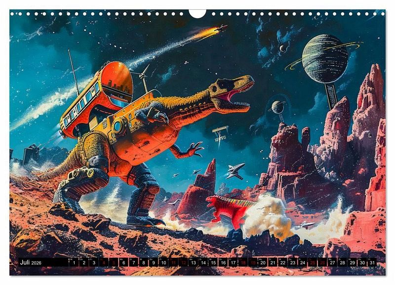 Entdecken Sie mit unserem Kalender "Dinosaurier Sci-Fi - Kampf der Urzeitgiganten im Weltall" eine epische Saga aus einer fernen Vergangenheit. Tauchen Sie ein in eine Welt voller Science-Fiction und Fantasy, in der die majestätischen Dinosaurier gegen furchterregende Aliens im unendlichen Weltraum kämpfen. Jeder Monat präsentiert atemberaubende KI-generierte Illustrationen, die sowohl Science-Fiction-Fans als auch Liebhaber der prähistorischen Ära begeistern werden. Erleben Sie den Zusammenprall zweier Welten, eingefangen in kunstvollen Bildern, die die grenzenlose Fantasie der Menschheit…mehr