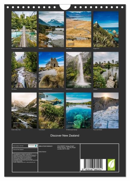 QUALITY - High-quality photo calendar with 12 beautiful images on light-resistant paper, robust spiral binding with hanger.SUSTAINABLE - Significant waste reduction due to print-on-demand production, environmentally friendly FSC-certified paper, produced in the UK, climate-conscious logistical processes.PERFECT GIFT - calendars for friends and family, for children, all ages and all occasions, from Christmas to birthdays and everything in between.LOTS OF CHOICE - Wall calendars in different sizes (DIN A4 and DIN A3), for any topic and personal taste, featuring photography, painting and illustrations.New Zealand is the country of superlatives., author: Stefan Becker