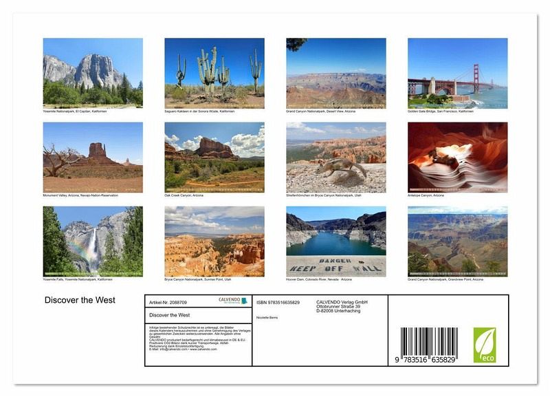 QUALITÄT - Hochwertiger Fotokalender mit 12 wunderschönen Motiven auf lichtbeständigem Bilderdruckpapier, robuste Spiralbindung mit Aufhängebügel.NACHHALTIG - deutliche Abfallreduzierung durch bedarfsgerechte Einzelstückfertigung, umweltfreundliches FSC-zertifiziertes Papier, Produktion in Deutschland, klimabewusste Logistik.PERFEKTES GESCHENK - Kalender für Freunde und Familie, für Kinder und Erwachsene, jung und alt, zu Weihnachten, Geburtstag oder zwischendurch.VIELFALT - Bildkalender in verschiedenen Formaten, z.B. DIN A5, DIN A4, DIN A3 sowie DIN A2. Ob Naturmotiv, Gemälde oder Fotos, ideal für ein persönliches Wohlfühlambiente.Highlight im Westen der USA von Autor(in): Nicolette Berns