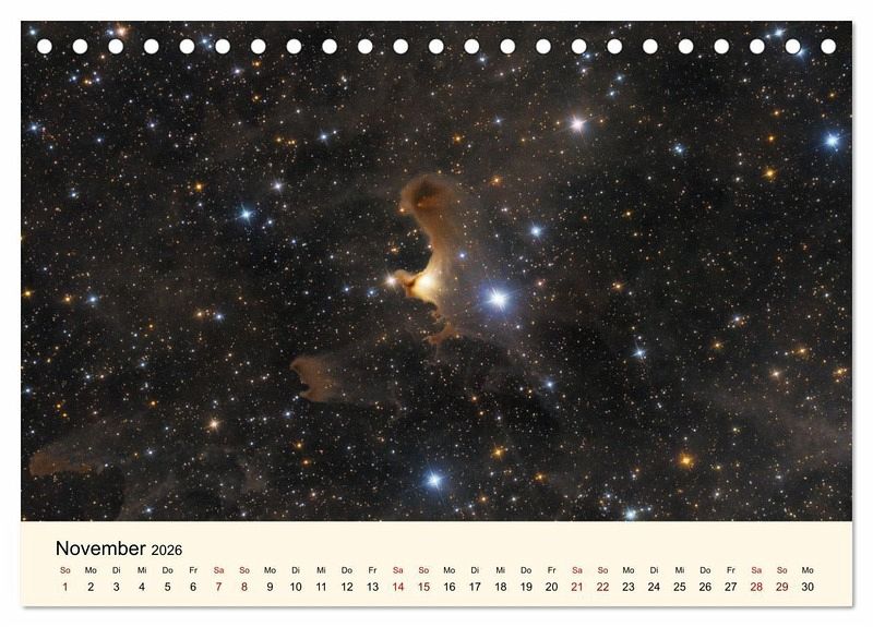Jeder Monat enthüllt eine mit großem Aufwand eingefangene Szene aus dem Kosmos. Von funkelnden Sternhaufen bis hin zur nebelverhangenen Milchstraße bietet unser Kalender einen tiefen Einblick in die Astronomie.