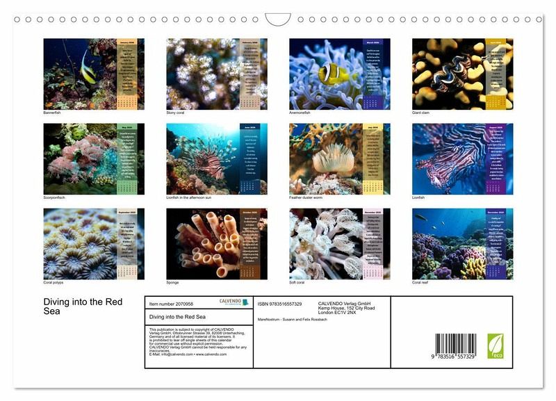 QUALITY - High-quality photo calendar with 12 beautiful images on light-resistant paper, robust spiral binding with hanger.SUSTAINABLE - Significant waste reduction due to print-on-demand production, environmentally friendly FSC-certified paper, produced in the UK, climate-conscious logistical processes.PERFECT GIFT - calendars for friends and family, for children, all ages and all occasions, from Christmas to birthdays and everything in between.LOTS OF CHOICE - Wall calendars in different sizes (DIN A4 and DIN A3), for any topic and personal taste, featuring photography, painting and illustrations.Dive into the colorful underwater world of the Red Sea and learn interesting facts about this fascinating ecosytem, author: Susann und Felix Roßbach
