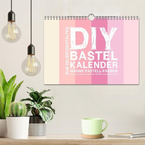 Werde kreativ und bastel dir deinen eigenen pastellfarbenen Kalender. Vielleicht im Stile des Scrapbookings mit eigenen Fotos, Collagen, Zeichnungen, Sprüchen, Gutscheinen, Zitaten und/oder deinen eigenen Texten. Oder aber du lässt dir etwas völlig anderes einfallen. Das liegt ganz bei dir!