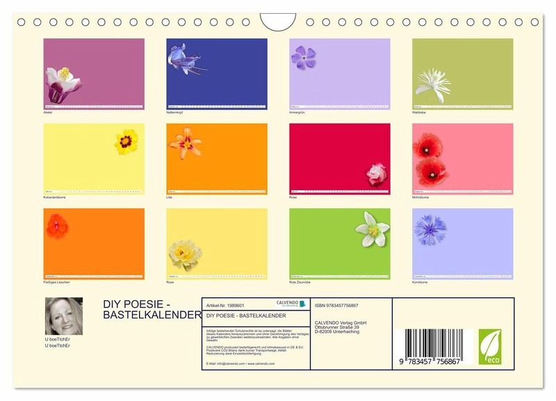 QUALITÄT - Hochwertiger Fotokalender mit 12 wunderschönen Motiven auf lichtbeständigem Bilderdruckpapier, robuste Spiralbindung mit Aufhängebügel.NACHHALTIG - deutliche Abfallreduzierung durch bedarfsgerechte Einzelstückfertigung, umweltfreundliches FSC-zertifiziertes Papier, Produktion in Deutschland, klimabewusste Logistik.PERFEKTES GESCHENK - Kalender für Freunde und Familie, für Kinder und Erwachsene, jung und alt, zu Weihnachten, Geburtstag oder zwischendurch.VIELFALT - Bildkalender in verschiedenen Formaten, z.B. DIN A5, DIN A4, DIN A3 sowie DIN A2. Ob Naturmotiv, Gemälde oder Fotos, ideal für ein persönliches Wohlfühlambiente.DIY POESIE - Zarte Blüten in fröhlichen Regenbogenfarben und reichlich Platz für unbegrenzte kreative Ideen von Autor(in): U boeTtchEr