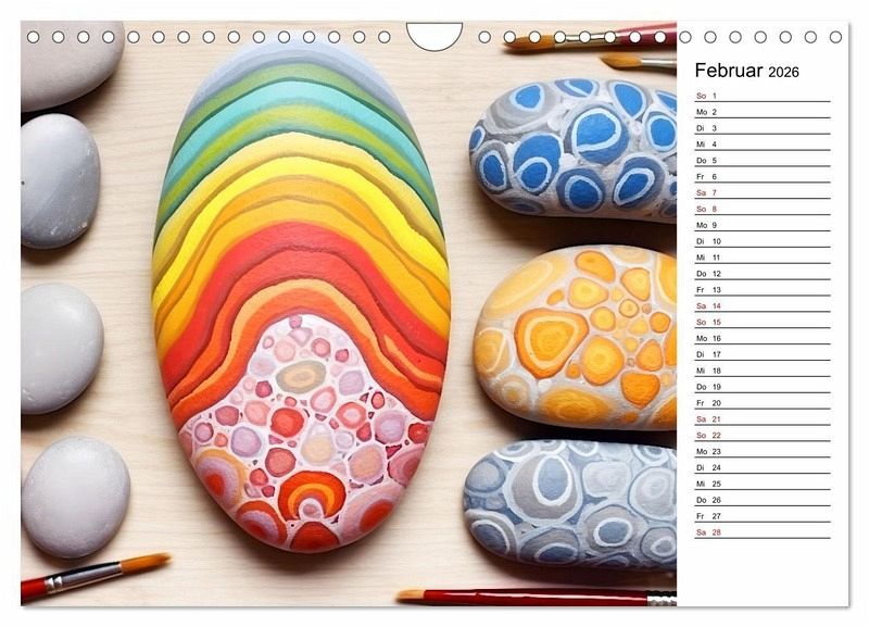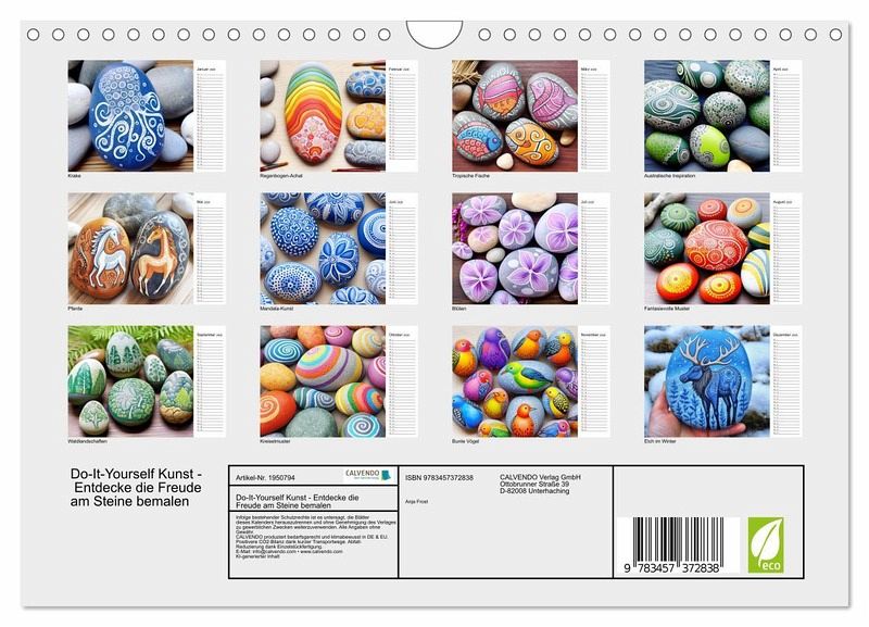 QUALITÄT - Hochwertiger Fotokalender mit 12 wunderschönen Motiven auf lichtbeständigem Bilderdruckpapier, robuste Spiralbindung mit Aufhängebügel.NACHHALTIG - deutliche Abfallreduzierung durch bedarfsgerechte Einzelstückfertigung, umweltfreundliches FSC-zertifiziertes Papier, Produktion in Deutschland, klimabewusste Logistik.PERFEKTES GESCHENK - Kalender für Freunde und Familie, für Kinder und Erwachsene, jung und alt, zu Weihnachten, Geburtstag oder zwischendurch.VIELFALT - Bildkalender in verschiedenen Formaten, z.B. DIN A5, DIN A4, DIN A3 sowie DIN A2. Ob Naturmotiv, Gemälde oder Fotos, ideal für ein persönliches Wohlfühlambiente.Ein Farbenrausch auf Steinen - Kreative Motive für das ganze Jahr von Autor(in): Anja Frost