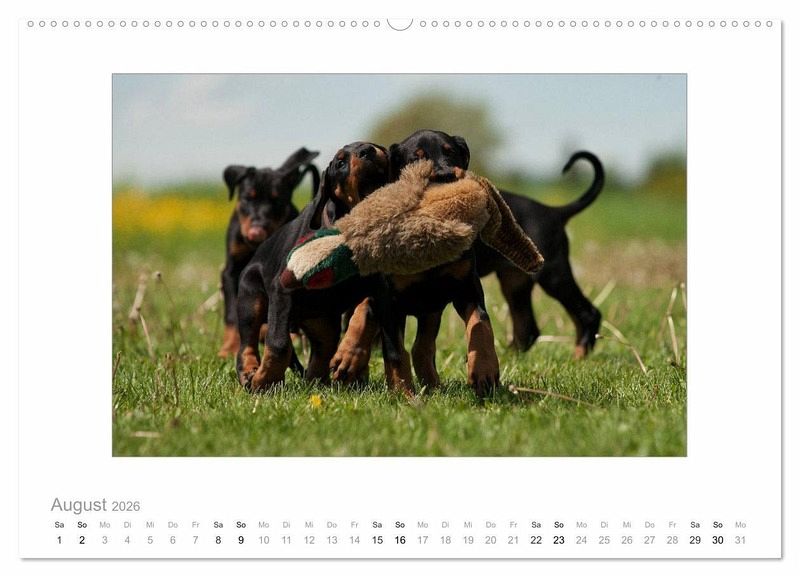 Der Dobermann - konzentriert, gehorsam, loyal, energisch, furchtlos, intelligent. Doch auch ein Dobermann fängt einmal "klein" an. Lassen Sie sich 12 Monate von den kleinen Vertretern dieser wunderbaren Rasse begleiten.