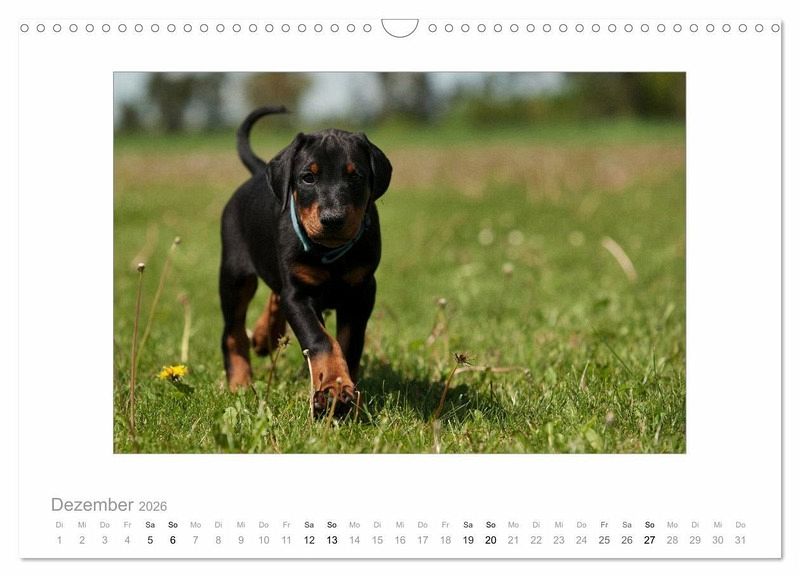 Der Dobermann - konzentriert, gehorsam, loyal, energisch, furchtlos, intelligent. Doch auch ein Dobermann fängt einmal "klein" an. Lassen Sie sich 12 Monate von den kleinen Vertretern dieser wunderbaren Rasse begleiten.