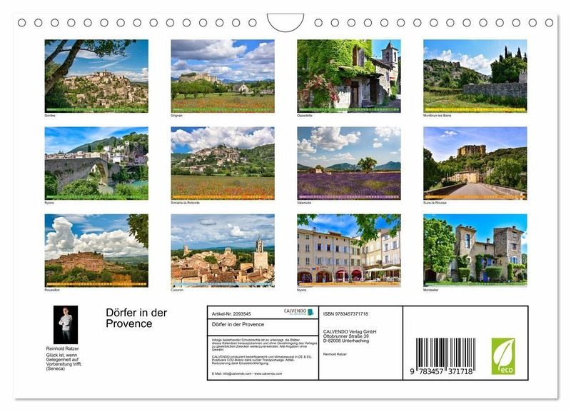 QUALITÄT - Hochwertiger Fotokalender mit 12 wunderschönen Motiven auf lichtbeständigem Bilderdruckpapier, robuste Spiralbindung mit Aufhängebügel.NACHHALTIG - deutliche Abfallreduzierung durch bedarfsgerechte Einzelstückfertigung, umweltfreundliches FSC-zertifiziertes Papier, Produktion in Deutschland, klimabewusste Logistik.PERFEKTES GESCHENK - Kalender für Freunde und Familie, für Kinder und Erwachsene, jung und alt, zu Weihnachten, Geburtstag oder zwischendurch.VIELFALT - Bildkalender in verschiedenen Formaten, z.B. DIN A5, DIN A4, DIN A3 sowie DIN A2. Ob Naturmotiv, Gemälde oder Fotos, ideal für ein persönliches Wohlfühlambiente.Idyllische Dörfer in der malerischen Landschaft der Provence. von Autor(in): Reinhold Ratzer