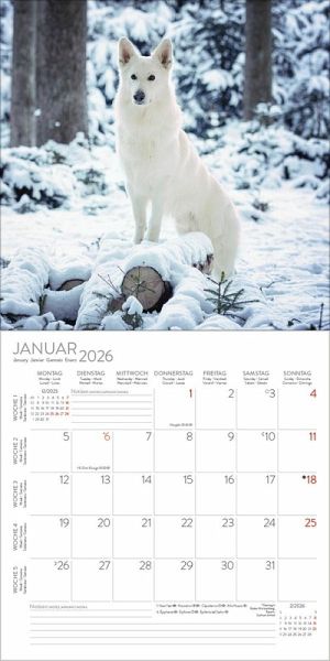 Wandkalender im Format: 30 x 30 cm; Offenes Format: 30 x 60 cm; umweltfreundliches FSC PapierJede Kalenderseite mit großem Bild und viel Platz im Kalendarium für Notizen und TermineMehrsprachiges Kalendarium: DE/GB/FR/IT/ES mit Feiertagen für D/A/CH/GB/FR/IT/ESRegionale Ferienzeiten für DE/A/CHMonatsübersicht für den jeweiligen Vor- und Nachmonat; Jahresübersicht