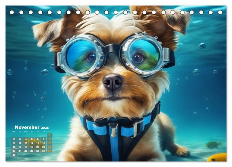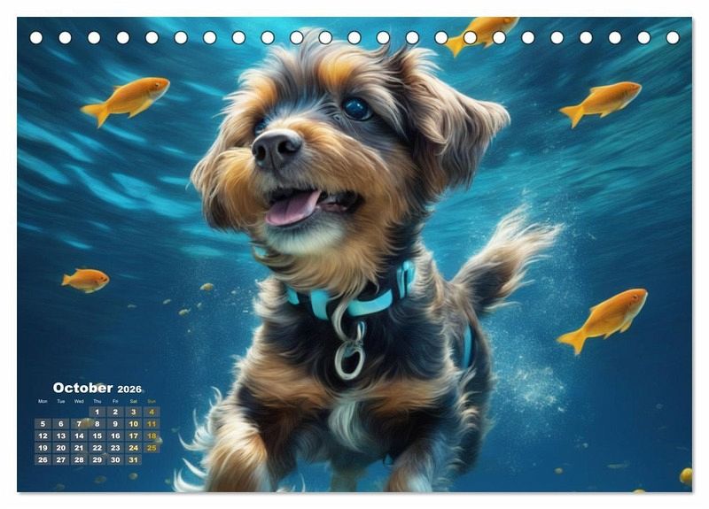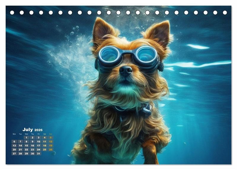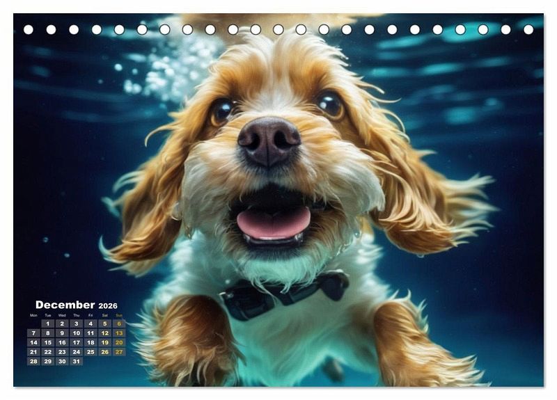 QUALITY - High-quality photo calendar with 12 beautiful images on light-resistant paper, robust spiral binding.SUSTAINABLE - Significant waste reduction due to print-on-demand production, environmentally friendly FSC-certified paper, produced locally, climate-conscious logistical processes.PERFECT GIFT - calendars for friends and family, for children, all ages and all occasions, from Christmas to birthdays and everything in between.LOTS OF CHOICE - Wall calendars in different sizes (DIN A4 and DIN A3), for any topic and personal taste, featuring photography, painting and illustrations.Discover the magic of dogs underwater. von Autor(in): Jérôme