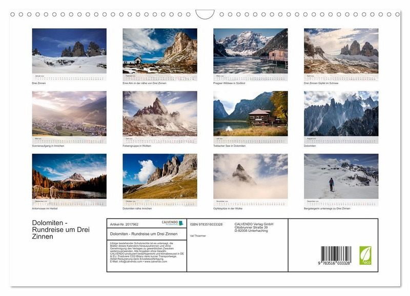 QUALITÄT - Hochwertiger Fotokalender mit 12 wunderschönen Motiven auf lichtbeständigem Bilderdruckpapier, robuste Spiralbindung mit Aufhängebügel.NACHHALTIG - deutliche Abfallreduzierung durch bedarfsgerechte Einzelstückfertigung, umweltfreundliches FSC-zertifiziertes Papier, Produktion in Deutschland, klimabewusste Logistik.PERFEKTES GESCHENK - Kalender für Freunde und Familie, für Kinder und Erwachsene, jung und alt, zu Weihnachten, Geburtstag oder zwischendurch.VIELFALT - Bildkalender in verschiedenen Formaten, z.B. DIN A5, DIN A4, DIN A3 sowie DIN A2. Ob Naturmotiv, Gemälde oder Fotos, ideal für ein persönliches Wohlfühlambiente.Kalender mit bergigen Landschaftsbildern aus Südtirol von Autor(in): Val Thoermer