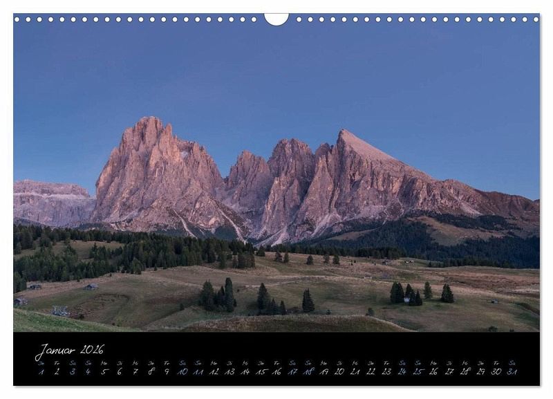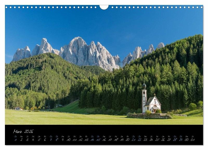 Die atemberaubenden Ausblicke und einzigartige Geologie der Dolomiten wurde über Jahrmillionen von Korallen im Meer erschaffen. Die gut erschlossene Bergwelt zieht jährlich tausende Touristen aus aller Welt in ihren Bann. Von Klettern über Wandern und Radfahren bis hin zu Kriegsgeschichte bietet die Karstlandschaft Norditaliens viele Freizeitmöglichkeiten. Lassen sie sich von den Bildern dieses Kalenders verzaubern!