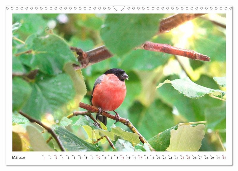 Leuchtend rot ist der Bauch der männlichen Gimpel, ein echter Hingucker auf Ast und Strauch. Sein Frauchen ist dezenter gefiedert, aber trotzdem schick. Das findet auch die Autorin und hat die Finkenvögel übers Jahr beobachtet. Erfreuen Sie sich jeden Monat an den farbenfrohen Fotos.