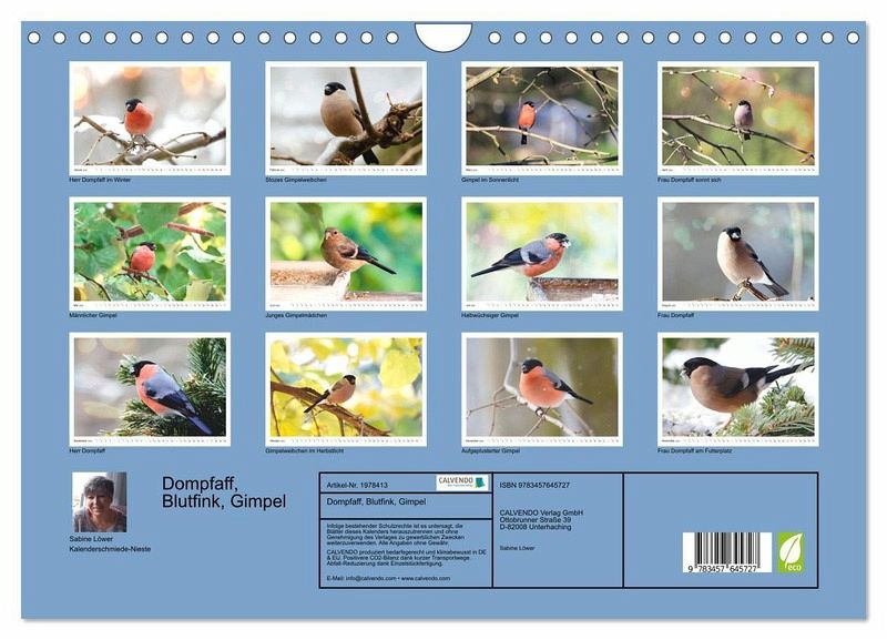 QUALITÄT - Hochwertiger Fotokalender mit 12 wunderschönen Motiven auf lichtbeständigem Bilderdruckpapier, robuste Spiralbindung mit Aufhängebügel.NACHHALTIG - deutliche Abfallreduzierung durch bedarfsgerechte Einzelstückfertigung, umweltfreundliches FSC-zertifiziertes Papier, Produktion in Deutschland, klimabewusste Logistik.PERFEKTES GESCHENK - Kalender für Freunde und Familie, für Kinder und Erwachsene, jung und alt, zu Weihnachten, Geburtstag oder zwischendurch.VIELFALT - Bildkalender in verschiedenen Formaten, z.B. DIN A5, DIN A4, DIN A3 sowie DIN A2. Ob Naturmotiv, Gemälde oder Fotos, ideal für ein persönliches Wohlfühlambiente.Drei Namen für einen Vertreter der Finken von Autor(in): Sabine Löwer