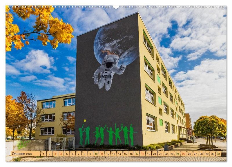 Oktober: Wandbild von Sigmund Jähn an der Schule im Wohnviertel der Kosmonauten- und Komponisten-Straßen