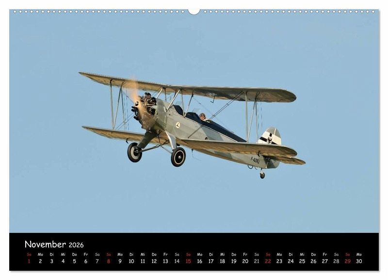 Lassen Sie sich durch das Jahr begleiten mit den weltberühmten Doppeldeckern wie z.B. Boeing Stearman PT-17, De Havilland Tiger Moth, Antonow AN-2, Pitt's S2s, Bücker Jungmeister u.v.m.