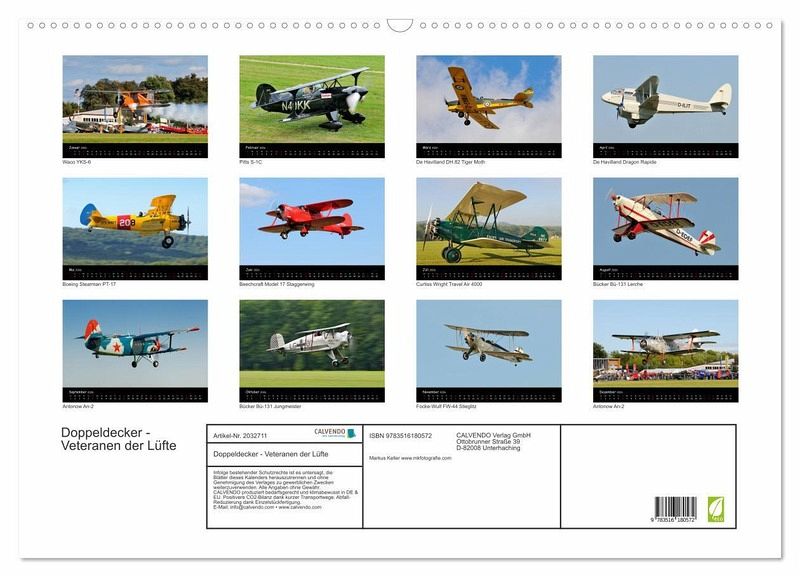 QUALITÄT - Hochwertiger Fotokalender mit 12 wunderschönen Motiven auf lichtbeständigem Bilderdruckpapier, robuste Spiralbindung mit Aufhängebügel.NACHHALTIG - deutliche Abfallreduzierung durch bedarfsgerechte Einzelstückfertigung, umweltfreundliches FSC-zertifiziertes Papier, Produktion in Deutschland, klimabewusste Logistik.PERFEKTES GESCHENK - Kalender für Freunde und Familie, für Kinder und Erwachsene, jung und alt, zu Weihnachten, Geburtstag oder zwischendurch.VIELFALT - Bildkalender in verschiedenen Formaten, z.B. DIN A5, DIN A4, DIN A3 sowie DIN A2. Ob Naturmotiv, Gemälde oder Fotos, ideal für ein persönliches Wohlfühlambiente.Legendäre Flugzeugveteranen in Aktion, fotografiert von Markus Kellervon Autor(in): Markus Keller