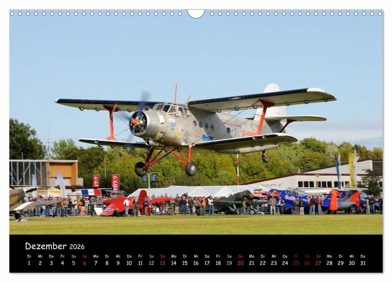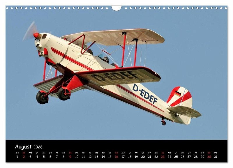 Lassen Sie sich durch das Jahr begleiten mit den weltberühmten Doppeldeckern wie z.B. Boeing Stearman PT-17, De Havilland Tiger Moth, Antonow AN-2, Pitt's S2s, Bücker Jungmeister u.v.m.