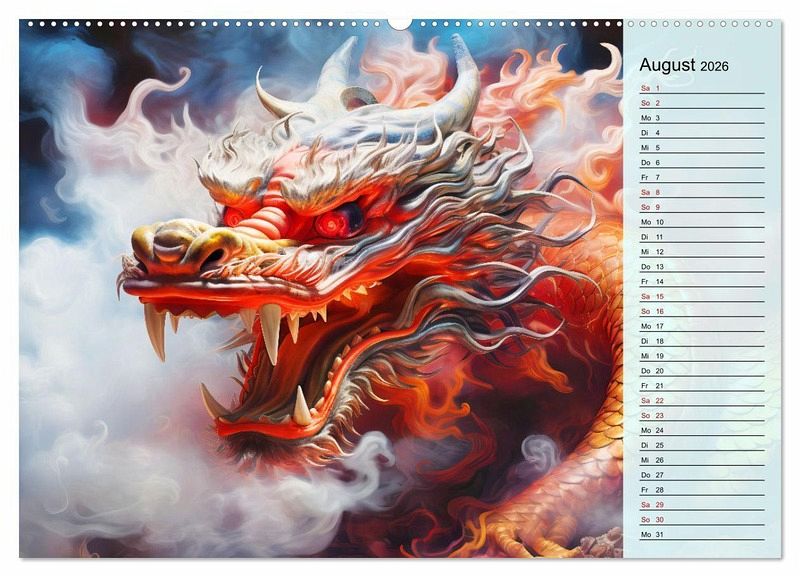 Tauchen Sie ein in die faszinierende Welt der Drachen mit unserem exquisiten Kalender im Airbrush-Stil. Jeder Monat präsentiert ein kunstvolles KI-generierte Meisterwerk, inspiriert vom chinesischen Tierkreiszeichen, und schafft ein visuelles Fest für Drachenliebhaber und Kunstenthusiasten. Mit zusätzlicher Planerfunktion für eine organisierte und inspirierte Gestaltung Ihres Jahres.
