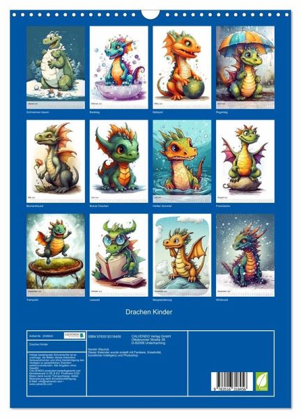 Die gefährlichen Drachen haben auch mal klein angefangen und mussten alles lernen, was man im Leben braucht. Dabei hatten sie scheinbar aber auch viel Spaß und zeigen das in diesem Kalender. Die Bilder dieses Kalenders wurden erstellt mit Fantasie, Kreativität, künstlicher Intelligenz und Photoshop