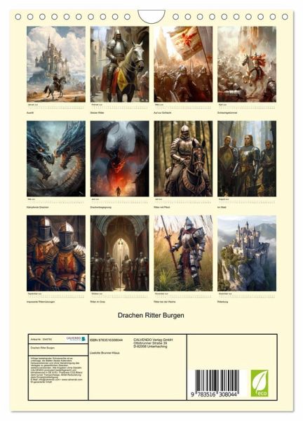 Erlebe das Mittelalter hautnah mit unserem neuen Kalender "Drachen Ritter Burgen"! Tauche ein in die Welt der Burgen, Schlachten, Ritter und natürlich der Drachen. Der faszinierende Mix aus berauschenden Schlachten der Ritter und imposanten Ritterbildern wird dich in den Bann ziehen.