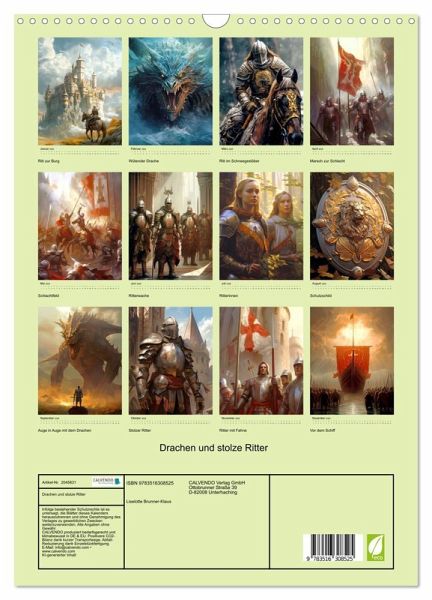 Erlebe das Mittelalter hautnah mit unserem neuen Kalender "Drachen und stolze Ritter"! Tauche ein in die Welt der Burgen, Schlachten, Ritter und natürlich der Drachen. Der faszinierende Mix aus berauschenden Schlachten der Ritter und imposanten Ritterbildern wird dich in den Bann ziehen.