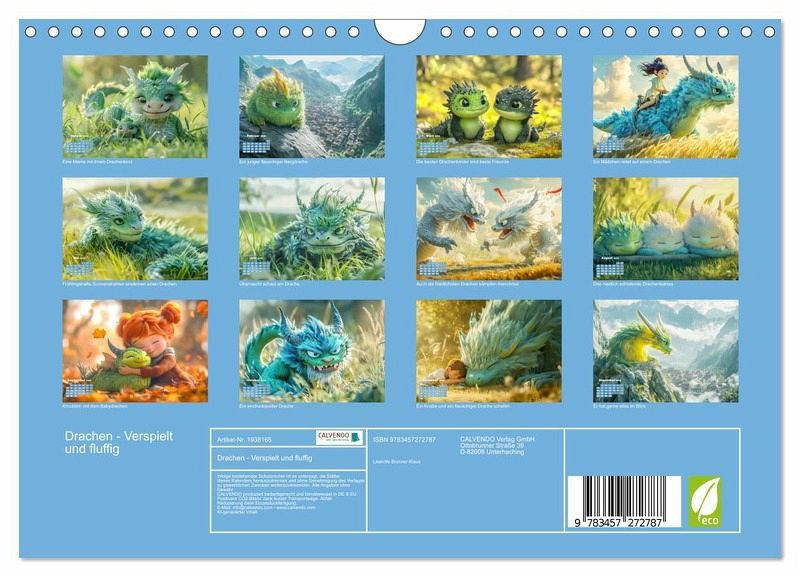 QUALITÄT - Hochwertiger Fotokalender mit 12 wunderschönen Motiven auf lichtbeständigem Bilderdruckpapier, robuste Spiralbindung mit Aufhängebügel.NACHHALTIG - deutliche Abfallreduzierung durch bedarfsgerechte Einzelstückfertigung, umweltfreundliches FSC-zertifiziertes Papier, Produktion in Deutschland, klimabewusste Logistik.PERFEKTES GESCHENK - Kalender für Freunde und Familie, für Kinder und Erwachsene, jung und alt, zu Weihnachten, Geburtstag oder zwischendurch.VIELFALT - Bildkalender in verschiedenen Formaten, z.B. DIN A5, DIN A4, DIN A3 sowie DIN A2. Ob Naturmotiv, Gemälde oder Fotos, ideal für ein persönliches Wohlfühlambiente.Kuschelige flauschige Drachen von Autor(in): Liselotte Brunner-Klaus
