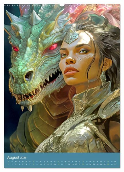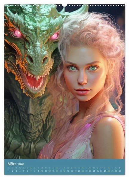 Tauchen Sie ein in die faszinierende Welt der Drachenfrauen und ihren Drachen mit unserem Kalender Drachenfrauen - Fantasiebilder. Lassen Sie sich von wunderschönen Frauen in atemberaubenden Drachenkleidern neben ihren majestätischen Drachen verzaubern. Die Drachen in den Farben rosa, weiß, schwarz und grün werden Sie mit ihren leuchtenden Augen in den Bann ziehen. Diese Bildergalerie ist eine Hommage an die Liebe zwischen den Drachenfrauen und ihren treuen Gefährten. Sichern Sie sich jetzt diesen einzigartigen Kalender und lassen Sie sich von der Magie der Fantasie verzaubern.