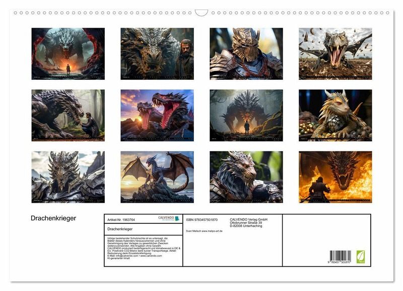 Erlebe die Faszination von "Drachenkrieger: Im Reich der mythischen Bestien"! Begib dich auf eine magische Reise, in der Menschen und Drachen zu unaufhaltsamen Verbündeten werden. Monat für Monat enthüllt dieser Kalender atemberaubende Illustrationen und epische Geschichten. Tauche ein in eine Welt voller Abenteuer und Fantasie. Sichere dir jetzt deine Begleiter für das kommende Jahr! KI generierte, händisch bearbeitete Motive.