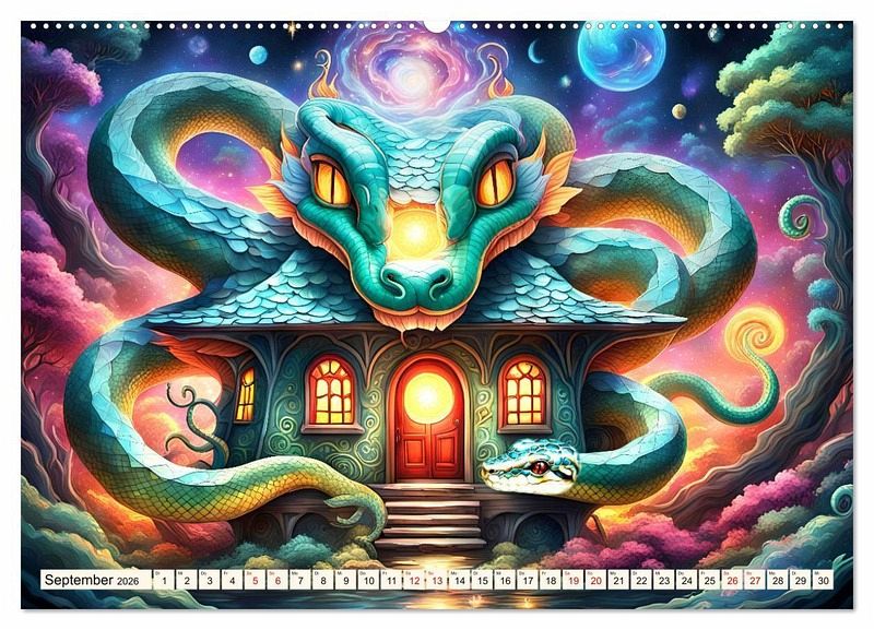 Tauchen Sie ein in die Welt der Fantasie mit unserem einzigartigen Kalender, der von künstlicher Intelligenz erschaffen wurde. Jedes Bild zeigt eine majestätische Schönheit eines mystischen Wesens, halb Schlange, halb Drache, ganz Hüter. Mit Schuppen, die im Mondlicht glitzern, und Augen, die mit Weisheit funkeln, ist unser Wächter nicht nur ein Beschützer des Heims, sondern auch ein Hüter der Zeit. Lassen Sie sich jeden Tag von der Stärke und der Schönheit dieses einzigartigen Geschöpfes inspirieren.