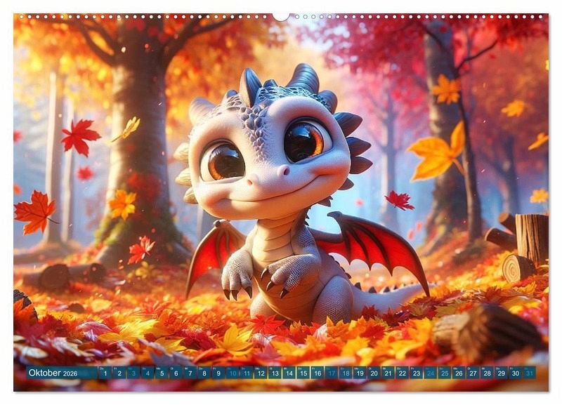 Oktober: Das herbstliche Abenteuer des kleinen Drachen im Laubwald