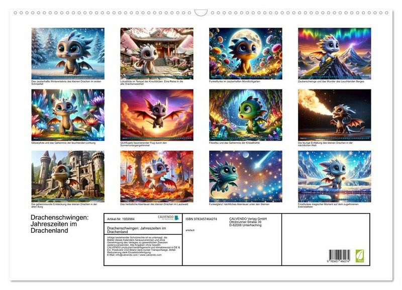 Entdecken Sie 'Drachenschwingen: Jahreszeiten im Drachenland', einen einzigartigen Kalender, der Sie durch ein Jahr voller zauberhafter Drachenabenteuer führt. Jedes Blatt ist ein Kunstwerk, erschaffen mit der neuesten KI-Technologie, die lebendige, farbenfrohe und fantasievolle Szenen in die Welt der Drachen bringt. Ideal für alle Altersgruppen, bringt dieser Kalender die Magie und das Staunen von Drachen in Ihr Zuhause. Erleben Sie Monat für Monat eine neue, bezaubernde Drachenwelt, die Ihre Fantasie anregt und Ihren Alltag erhellt.