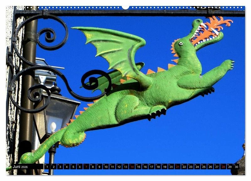 Juni: Altes Wirtshausschild mit Drachendarstellung