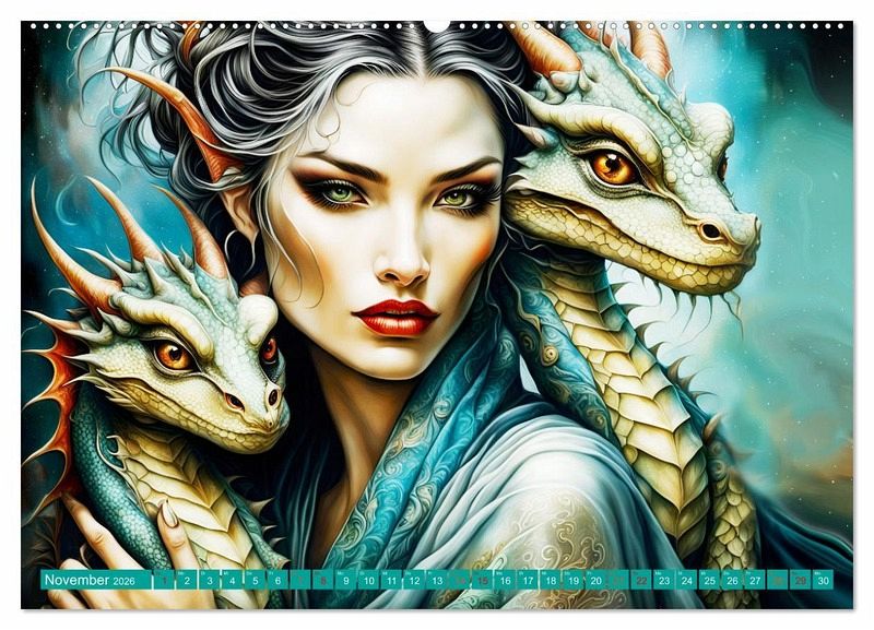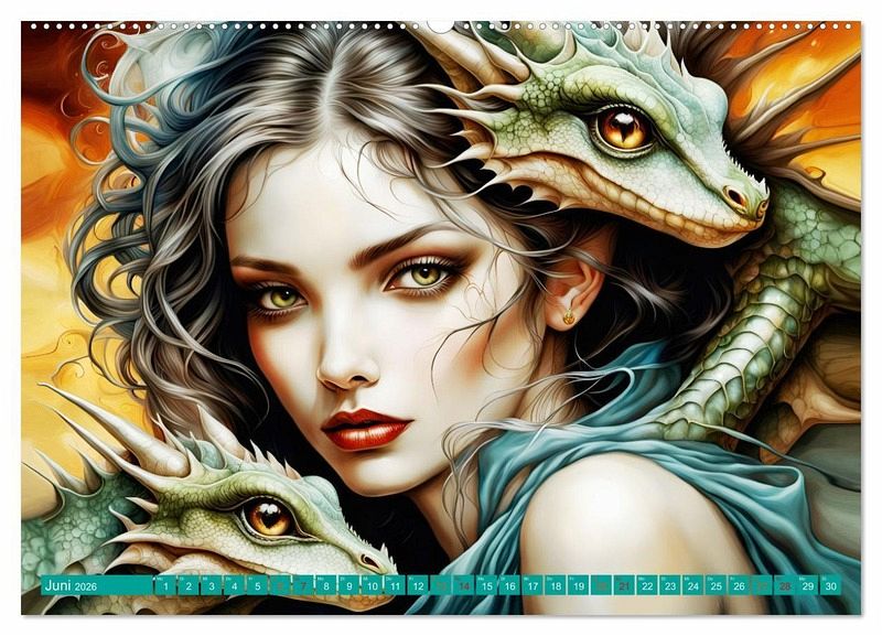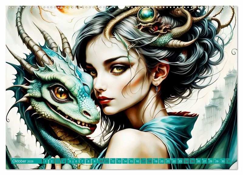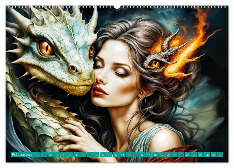 Dieser einzigartige Kalender, präsentiert die Schönheit der Drachenwelt in Verbindung mit einer anmutigen Frau. Erleben Sie Monat für Monat die fesselnde Kombination aus der mysteriösen Anziehungskraft der Drachen und der bezaubernden Ausstrahlung der Frau. Tauchen Sie ein und lassen Sie sich entführen in eine Welt, die Ihre Fantasie beflügelt.