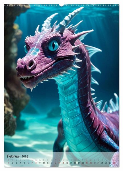 Februar: Ein geheimnisvoller Wasserdrache, der in den stillen Tiefen der Ozeane lauert und die Kühle und Ruhe des Winters verkörpert.