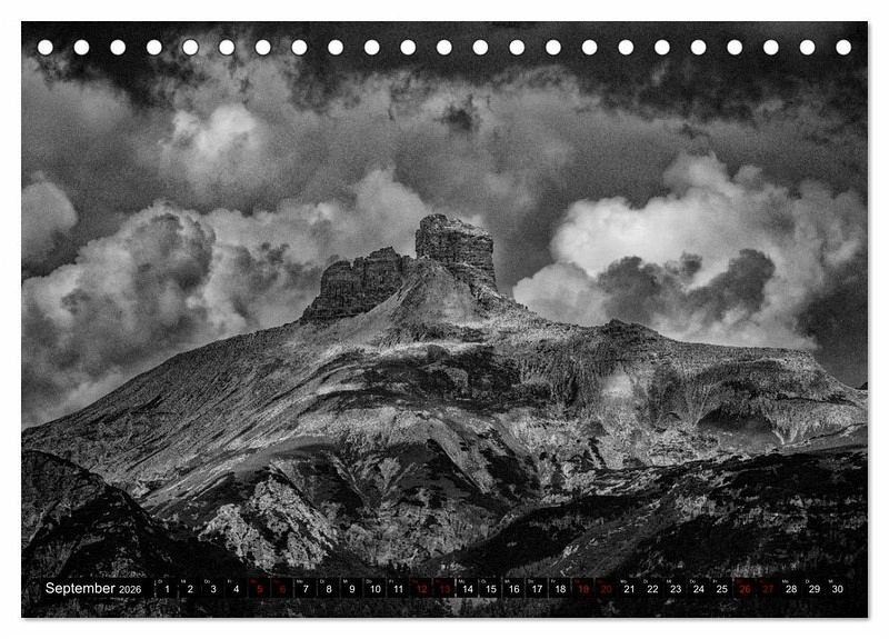 Eine Sammlung dramatischer Wolken oder Landschaftsdarstellungen in Schwarzweiß. Die Motive sind aus Island und den Alpen (Allgäu, Dolomiten).