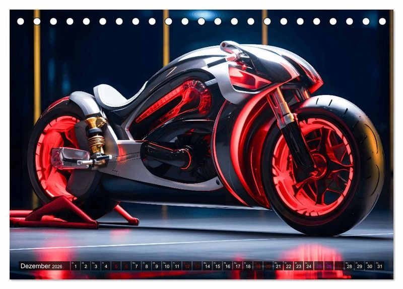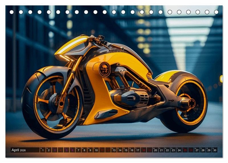 Tauchen Sie ein in die aufregende Welt der Zukunft des Zweiradfahrens mit unserem Kalender 'Dream Bikes - Motorräder aus der Zukunft'. Erleben Sie Monat für Monat atemberaubende Konzepte und innovative Fantasie-Designs, die die Straßen unserer Zukunft erobern könnten. Dieser Kalender ist ein Muss für alle Motorradliebhaber und Design-Enthusiasten. Bestellen Sie noch heute und lassen Sie sich von unserer Vision der kommenden Generation von Motorrädern inspirieren.