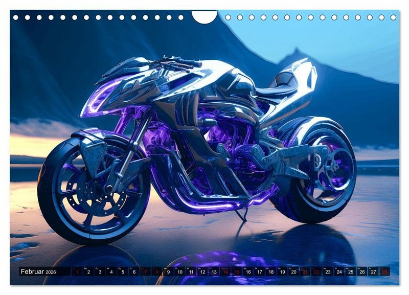Tauchen Sie ein in die aufregende Welt der Zukunft des Zweiradfahrens mit unserem Kalender 'Dream Bikes - Motorräder aus der Zukunft'. Erleben Sie Monat für Monat atemberaubende Konzepte und innovative Fantasie-Designs, die die Straßen unserer Zukunft erobern könnten. Dieser Kalender ist ein Muss für alle Motorradliebhaber und Design-Enthusiasten. Bestellen Sie noch heute und lassen Sie sich von unserer Vision der kommenden Generation von Motorrädern inspirieren.