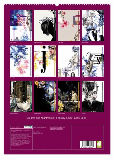 PREMIUM-LINIE - Brillanter Fotokalender mit 12 wunderschönen Motiven, Kunstdruck in Hochglanz in Museumsqualität.QUALITÄT - edle Materialien, stabile Rückwand mit 2 innovativen Einstecktaschen für eine optimale Präsentation an der Wand.NACHHALTIG - deutliche Abfallreduzierung durch bedarfsgerechte Einzelstückfertigung, umweltfreundliches FSC-zertifiziertes Papier, Produktion in Deutschland, klimabewusste Logistik.PERFEKTES GESCHENK - Kalender für Freunde und Familie, für Kinder und Erwachsene, jung und alt, zu Weihnachten, Geburtstag oder zwischendurch.Die Schönheit von Träumen und ihr Wahnsinn - gefasst in 12 traumhaften Collagen von Autor(in): Ronit Wolf