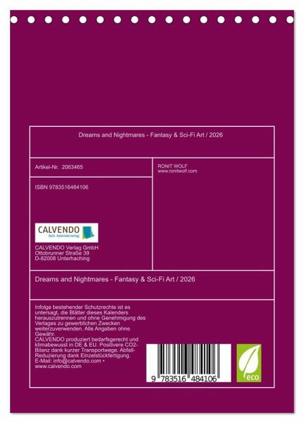 QUALITÄT - Hochwertiger Fotokalender mit 12 wunderschönen Motiven auf lichtbeständigem Bilderdruckpapier, robuste Spiralbindung.NACHHALTIG - deutliche Abfallreduzierung durch bedarfsgerechte Einzelstückfertigung, umweltfreundliches FSC-zertifiziertes Papier, Produktion in Deutschland, klimabewusste Logistik.PERFEKTES GESCHENK - Kalender für Freunde und Familie, für Kinder und Erwachsene, jung und alt, zu Weihnachten, Geburtstag oder zwischendurch.VIELFALT - Bildkalender in verschiedenen Formaten, z.B. DIN A5, DIN A4, DIN A3 sowie DIN A2. Ob Naturmotiv, Gemälde oder Fotos, ideal für ein persönliches Wohlfühlambiente.Die Schönheit von Träumen und ihr Wahnsinn - gefasst in 12 traumhaften Collagen von Autor(in): Ronit Wolf