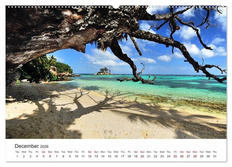 Who never dreamt of a beach where everything is but peace and simplicity. Many such beaches exist in the Seychelles. This calendar shows pictures of the most beautiful beaches on the Mahé, Praslin, La Digue and Curieuse.