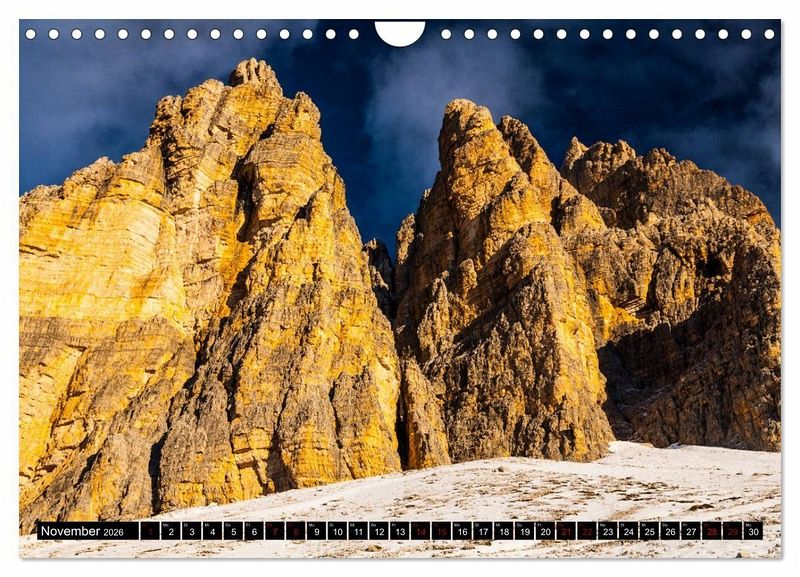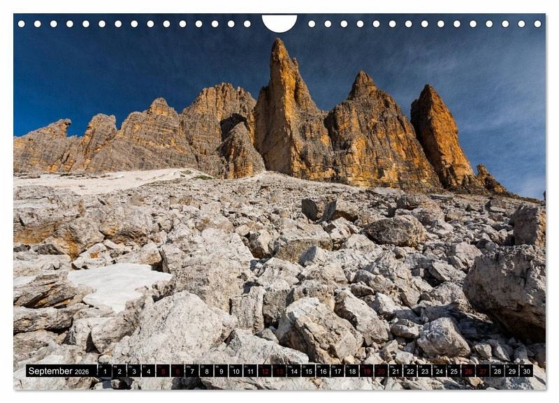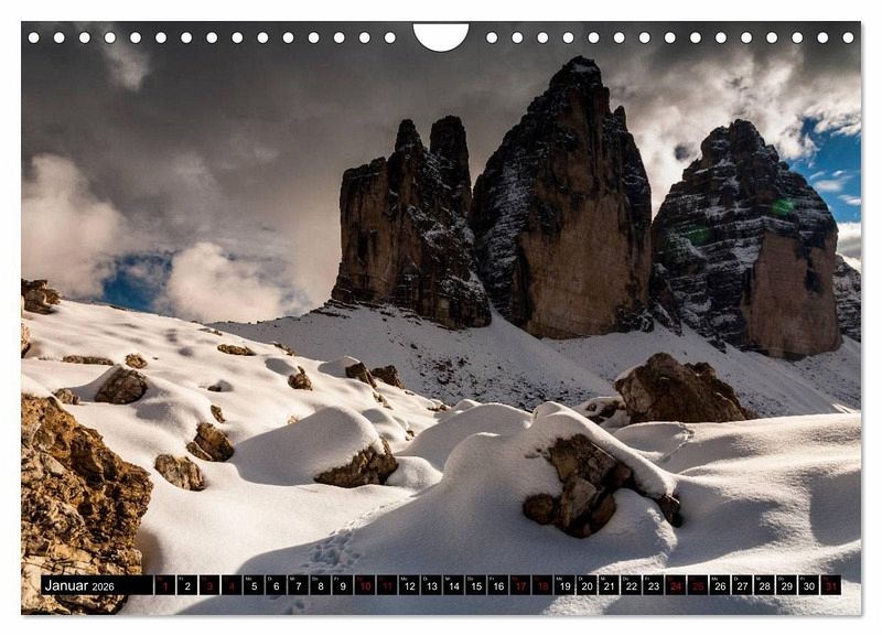 Besonders beeindruckend sind die faszinierenden Aufnahmen von den Dolomiten. Erleben Sie eine Wanderung zu den Drei Zinnen. Genießen Sie jeden Monat ein neues spannendes Motiv.