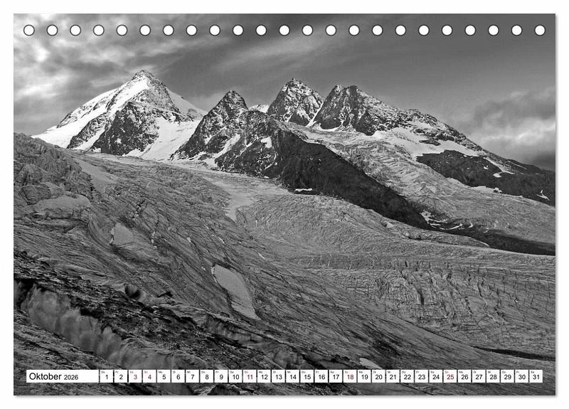 Dieser Anblick der fantastischen Bergwelt der höchsten Berge in Österreich lässt Sie Ihr Herz höher schlagen. In schwarz weiß kommen die Konturen der Felsen besonders gut zur Geltung und die Gletscher erstrahlen in einer schönen Lichtstimmung.