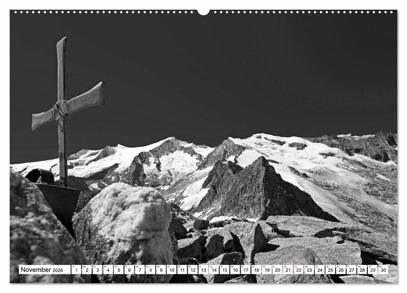 Dieser Anblick der fantastischen Bergwelt der höchsten Berge in Österreich lässt Sie Ihr Herz höher schlagen. In schwarz weiß kommen die Konturen der Felsen besonders gut zur Geltung und die Gletscher erstrahlen in einer schönen Lichtstimmung.