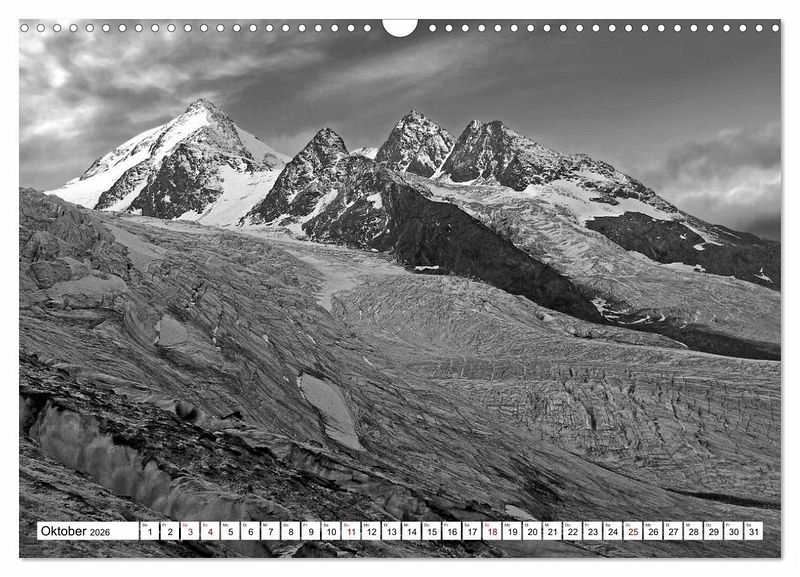 Dieser Anblick der fantastischen Bergwelt der höchsten Berge in Österreich lässt Sie Ihr Herz höher schlagen. In schwarz weiß kommen die Konturen der Felsen besonders gut zur Geltung und die Gletscher erstrahlen in einer schönen Lichtstimmung.
