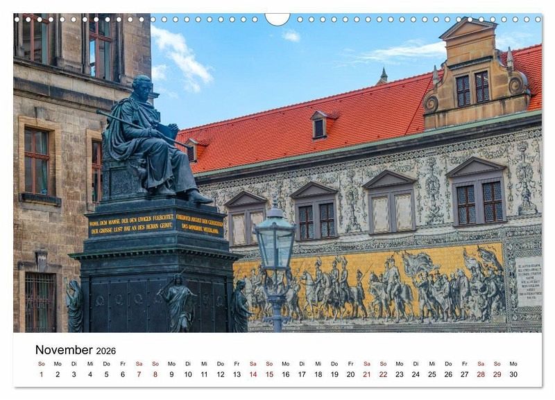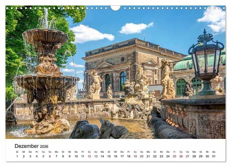 Erleben Sie die besondere Atmosphäre der Dresdner Altstadt in diesem stimmungsvollen Kalender. Monumente wie die Frauenkirche, die Semperoper und der Zwinger treffen auf historische Plätze, barocke Details und festliche Szenen. Monat für Monat entdecken Sie architektonische Meisterwerke, kunstvolle Statuen und das einzigartige Flair einer Stadt mit großer Geschichte und kultureller Tiefe. Perfekt für Liebhaber klassischer Städte, Architektur und Sachsen-Romantik.