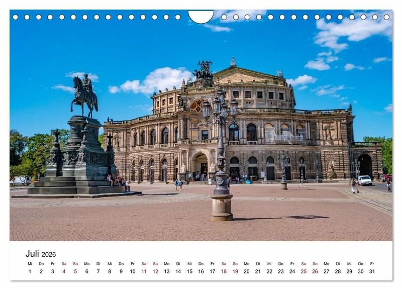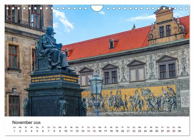Erleben Sie die besondere Atmosphäre der Dresdner Altstadt in diesem stimmungsvollen Kalender. Monumente wie die Frauenkirche, die Semperoper und der Zwinger treffen auf historische Plätze, barocke Details und festliche Szenen. Monat für Monat entdecken Sie architektonische Meisterwerke, kunstvolle Statuen und das einzigartige Flair einer Stadt mit großer Geschichte und kultureller Tiefe. Perfekt für Liebhaber klassischer Städte, Architektur und Sachsen-Romantik.