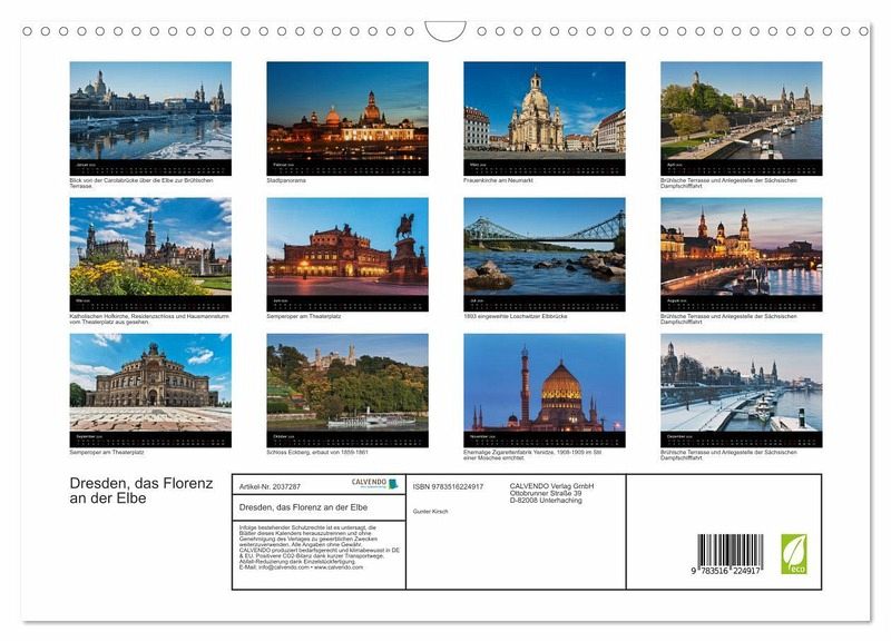 QUALITÄT - Hochwertiger Fotokalender mit 12 wunderschönen Motiven auf lichtbeständigem Bilderdruckpapier, robuste Spiralbindung mit Aufhängebügel.NACHHALTIG - deutliche Abfallreduzierung durch bedarfsgerechte Einzelstückfertigung, umweltfreundliches FSC-zertifiziertes Papier, Produktion in Deutschland, klimabewusste Logistik.PERFEKTES GESCHENK - Kalender für Freunde und Familie, für Kinder und Erwachsene, jung und alt, zu Weihnachten, Geburtstag oder zwischendurch.VIELFALT - Bildkalender in verschiedenen Formaten, z.B. DIN A5, DIN A4, DIN A3 sowie DIN A2. Ob Naturmotiv, Gemälde oder Fotos, ideal für ein persönliches Wohlfühlambiente.Dresden, das Florenz an der Elbe. Den Beinamen erhielt Dresden Anfang des 19.Jahrhunderts. Damit sollen Gemeinsamkeiten zwischen der Sächsischen Hauptstadt und der Hauptstadt der Toskana in Architektur und Kunst hervorgehoben werden. von Autor(in): Gunter Kirsch