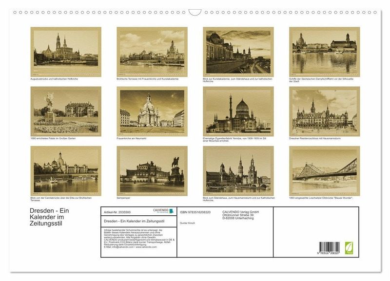 Dresden - Ein Kalender im Zeitungsstil. Der Fotograf Gunter Kirsch hat bei diesem Kalender neue, digitale Fotos so bearbeitet, dass sie den Eindruck vermitteln, aus einer längst vergangenen Epoche zu sein.